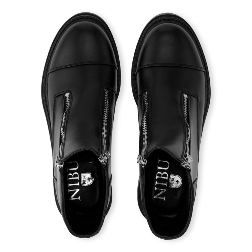 Sorte ankelstøvler med sølvfarvede lynlåse. Disse ankelstøvler er designet til at passe til alle outfits.